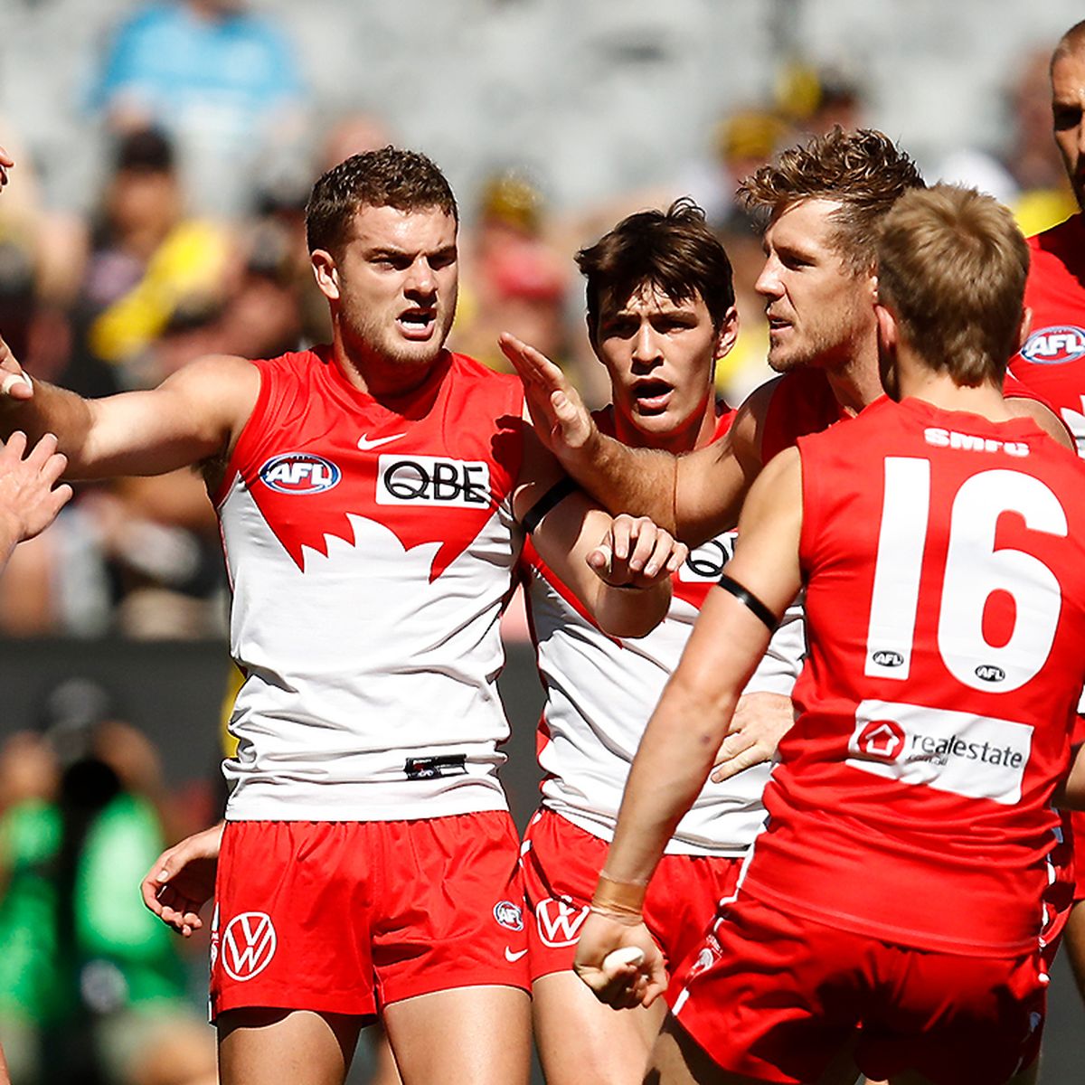 Afl Sydney Swans Thump Richmond Minus Lance Franklin Dion Prestia Hamstring Injury Sam Wicks Tom Papley Star Isaac Heeney Goal Of The Year Video