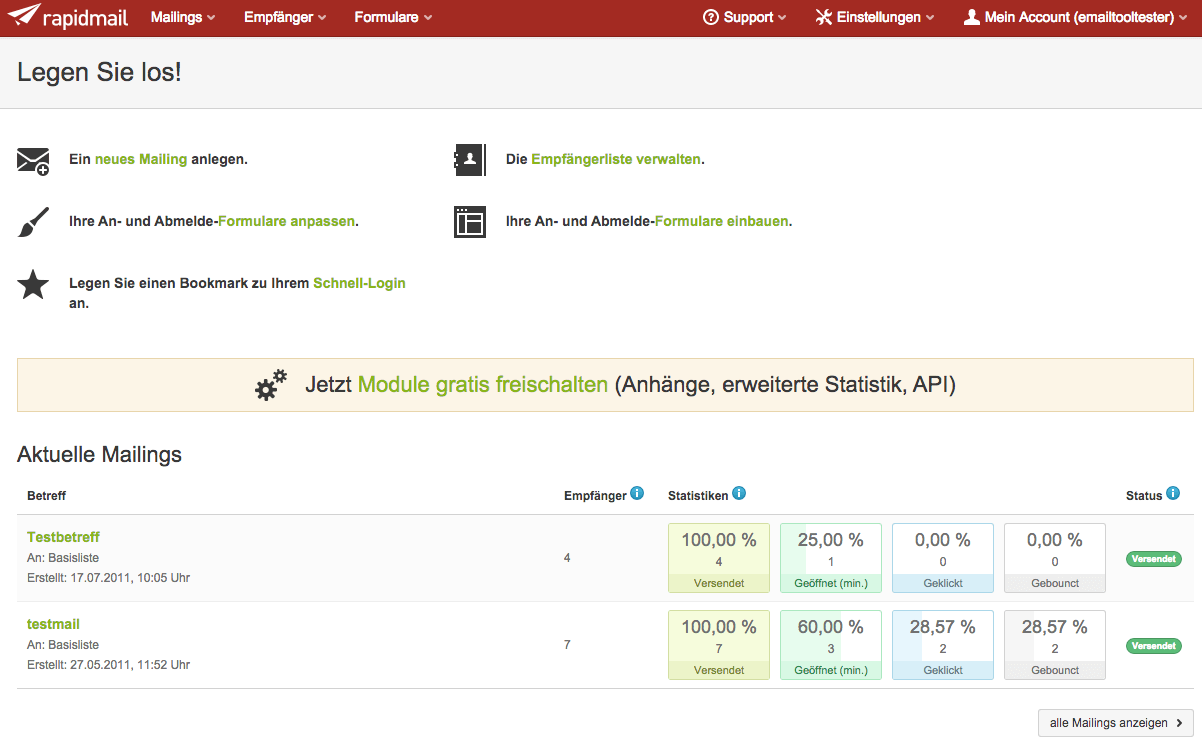 Sie verwenden einen alten Browser für den der Entwickler bald keine Sicherheitsupdates mehr zur Verfügung stellen wird. Rapidmail im Test - Note. Sehr hilfreich dabei ist Erstellung Versand und Auswertung übersichtlich in EINEM Tool zu haben.
